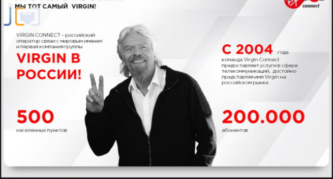 С этим амбициозным лозунгом «Да, тот самый Virgin» швейцарская компания зашла в Россию в 2004 году. Строились грандиозные планы: стать как минимум наравне с Ростелекомом по покорению территории. Но не справилась с нашими налогами, а сверху комом наросли и другие долги. Хотя за 17 лет на отечественном рынке провайдер VirginConnect распространился на 67 регионов.