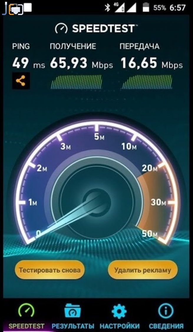 4 место: Ростелеком — входящая 50,11 Мбит/с, исходящая 45,52 Мбит/с. Как раз у этого провайдера больше всего “старого фонда” по технологии ADSL. Люди, которые пользуются таким интернетом, не могут рассчитывать на скорость выше 10 Мбит/с.