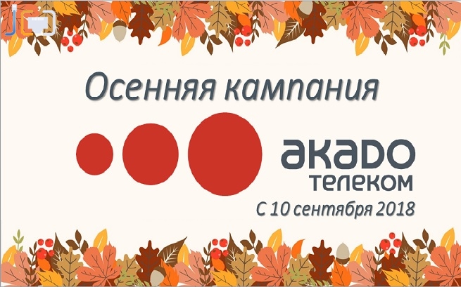 Если вы только планируете подключение к интернету – это ваш шанс в течение долгого периода иметь эксклюзивную крутую скидку. «Акадо» доказал, что осень – это, прежде всего, выгода.
