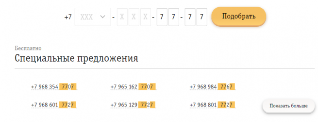 Но есть возможность приобрести номер «с понтами» и бесплатно. Чуть выше предложений с номерами можно увидеть кнопки системы фильтров. Они-то и приведут Вас к телефону, который будет приближен к тому, который Вы нафантазировали.